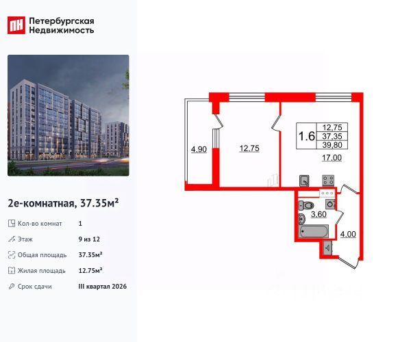 Продается просторная 1-комнатная квартира от застройщика в жилом комплексе "Бионика Заповедная" в динамичном Приморском районе. До метро можно добраться на транспорте всего за 11 минут. Удобная, классическая, функциональная европланировка, большая кухня-гостиная 17 м², вместительная прихожая 4 м². Общая площадь квартиры - 37.35 м², жилая 12.75 м², высота потолка 2.77 м. Квартира продается с отделкой "NORD LINE WHITE ВК NEW". Что особенного в ЖК "Бионика Заповедная"? • Оазис в городе 3 минуты пешком до Новоорловского заказника (140 ГА) • Захватывающие виды из окон на хвойный лесопарк • Всесезонный "Заповедный парк" во дворе площадью 23000 кв.м. • 5 единых входных групп с авторским дизайном и лаундж-зонами, сити-виллы на первых этажах с палисадниками и высотой потолков до 4 м • Места притяжения: фонтан "Бионика", спортивный кластер со скейт-парком, фотозоны с арт-объектами