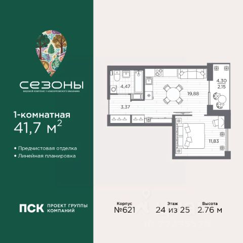 Продается 1 комнатная квартира 75 в ЖК ОКЛА от застpойщикa. "Окла вижн" — современный жилой квартал с высоким уровнем комфорта в Приморском районе Санкт-Петербурга. Расположен в окружении парков и озёр с развитой инфраструктурой. Для тех, кто любит респектабельный образ жизни. Удобная локация: проект имеет отличную транспортную доступность с удобными выездами на КАД. До исторического центра Петербурга дорога займет 20 минут на автомобиле, а добраться до метро "Проспект Просвещения", "Озерки" и "Удельная" можно за 10 минут на транспорте. Природа у порога: комплекс расположен рядом с Новоорловским заказником и Суздальскими озерами. До входа в заказник 50 метров. Идеальное место для утренних пробежек и прогулок с семьей на свежем воздухе. Благоустройство: дворы-парки с авторским ландшафтным озеленением, сухим фонтаном, современным игровыми площадками для детей разных возрастов и зонами для занятий спортом. Школы, детские сады, а также привычная повседневная инфраструктура для комфортной жизни: магазины, кафе, салоны красоты, тренажерные залы и пункты выдачи популярных маркетплейсов. Архитектура: стильные фасады от известного архитектурного бюро, панорамное остекление с потрясающими видами на заказник, дизайнерские лобби и скоростные бесшумные лифты, дома 25 этажей с небольшим количеством соседей на этаже. Безопасность: территория квартала закрыта для посторонних и автомобилей. Доступ на территорию осуществляется по индивидуальным магнитным ключам. В квартале действуют современные системы видеонаблюдения. Паркинг: на территории предусмотрен многоуровневый паркинг, а так же гостевая парковка. Цены на евродвушку в новостройке в районе Приморский в Санкт-Петербурге.