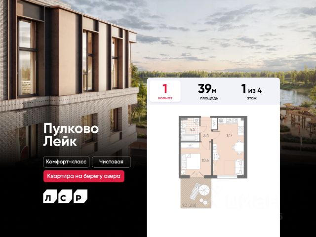 Продается 1-комнатная квартира в ЖК "Пулково Лейк" на 1 этаже. Общая площадь составляет 43.70 кв. м. Квартира с чистовой отделкой. Жилой комплекс "Пулково Лейк" располагается по адресу Санкт-Петербург, Московский. Пулково Лейк - проект малоэтажной застройки на берегу озера на границе Московского и Пушкинского районов. Дома высотой всего 4 этажа, квартиры от уютных студий до трехкомнатных квартир для большой семьи. Широчайший выбор планировок, включая квартиры с мастер-спальнями, патио, каминами, саунами, двухуровневые квартиры. Школа, детские сады, парк на берегу озера и выезды на Пулковское и Петербургское шоссе. Расположение: • 5 мин на авто до Аэропорта Пулково; • 10 мин на авто до станций метро "Московская; • 10-15 мин на авто до городов Пушкина, Павловска и Гатчины; • 20 мин на авто до центра Санкт-Петербурга. Квартиры в проекте сдаются с предчистовой и чистовой отделкой Соmfоrt Stоnе и Соmfоrt Wооd по современным стандартам - Вы можете сами выбрать отделку, подходящую именно Вам. Дома оборудованы самыми современными инженерными системами и "Умным домом". В рамках проекта будет построена современная школа на 925 мест и 2 детских сада на 160 и 240 мест, выезды на Пулковское и Петербургское шоссе, а также храм рядом со сквером "Пулковский рубеж". Общественное пространство вдоль берега озера превратится во всесезонный парк, в котором найдется место для любых активностей от пробежек, катания на САПах и велосипедах до отдыха в шезлонгах и любования закатом солнца. Зимой будет работать каток, проложен лыжный маршрут, предусмотрено место для новогодней елки и горок для детей. Для Ваших питомцев - площадка для выгула собак. Преимущества: • Высота потолков от 2,6 до 4,5 м; • Уникальные планировки; • Парк на берегу озера; • Система "Умный дом"; • Дворы без машин; • Колясочная в парадной; • Видеонаблюдение в холлах, на первом этаже, в лифтах и в паркингах. Успейте приобрести квартиру на выгодных условиях! Чтобы узнать подробности, обращайтесь за консультацией по телефону. Купить квартиру евродвушку в новостройке в районе Пушкинский в Санкт-Петербурге.