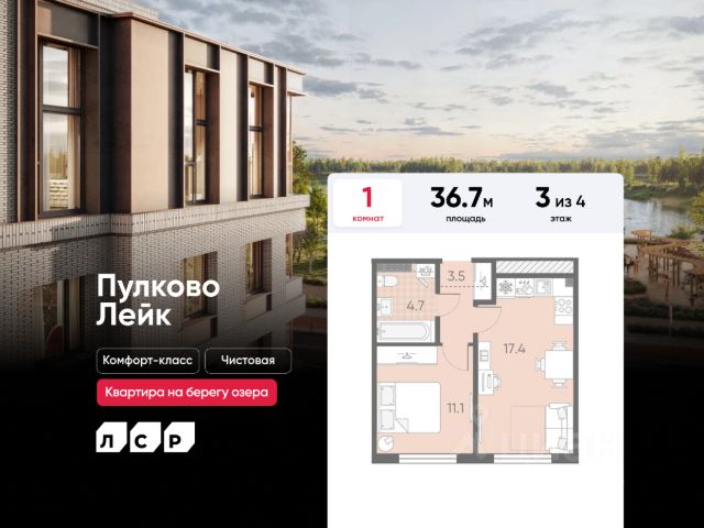 Продается 1-комнатная квартира в ЖК "Пулково Лейк" на 1 этаже. Общая площадь составляет 40.60 кв. м. Квартира с чистовой отделкой. Жилой комплекс "Пулково Лейк" располагается по адресу Санкт-Петербург, Московский.