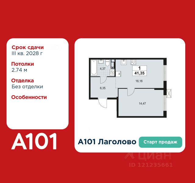 ПЕРЕУСТУПКА ПРАВА! Продаётся квартира в новостройке — ЖК "А101 Лаголово" , корп. 1.1 Общая площадь квартиры — 34,6 кв. м., этаж 3 из 9, секция 1 Без отделки Тип проекта, по которому построен дом — монолит Компания-застройщик — ГК "А101". Срок сдачи — 4-й квартал 2025 ОТДЕЛКА Квартира передается без отделки. Благодаря тому, что в данном типе отделки стены не возводятся, вы сможете создать удобную планировку и самостоятельно организовать зонирование комнат. ОСОБЕННОСТИ ПЛАНИРОВКИ Мезонин - полуэтаж с большим количеством естественного света. На втором уровне можно организовать спальню или кабинет. Патио - это собственный дворик или терраса с выходом из квартиры во двор, огорожен живой изгородью, пол надежно защищен бетонной плитой. ПАРАДНАЯ В каждой парадной предусмотрены места для хранения велосипедов и колясок, гостевой санузел, лапамойка (место для мытья домашних животных или колес велосипедов) и удобная зона ожидания для гостей. ДВОРЫ И ОКРУЖЕНИЕ Просторные дворы свободны от машин и закрыты от посторонних. Большую часть комплекса займут благоустроенные зелёные зоны, теневые сады и городские общественные пространства с развитой тротуарной сетью и велодорожками. Каждый дом оборудован системами видеонаблюдения и контроля доступа. "А101 Лаголово" - современный город у подножия знаменитых Дудерговских высот, в объятиях чистейших озёр и зелёных живописных массивов, наполненный всем необходимым для счастливой жизни. ИНФРАСТРУКТУРА. Мы занимаемся комплексным освоением территории. Наш приоритет - доступность всех сервисов для счастливой жизни. 1. Лаголово-город 15-ти минутной доступности. Вся необходимая инфраструктура: магазины, салоны красоты, образовательные учреждения, медицинские центры находятся в 15-ти минутах пешей прогулки от любой точки жилого комплекса. Это позволяет не тратить время на долгие перемещения. 2. Представьте идеальный город, где ребенок может спокойно играть, а пожилой человек наслаждаться заслуженным отдыхом. Жилая среда нашего комплекса может комфортно использоваться как 8-летним ребенком, так и 80-летним пожилым человеком. Дома, улицы, общественные пространства, тротуары спроектированы с заботой о людях разных возрастов. 3. Мы активно развиваем авторскую образовательную экосистему "Лёрнити". Она включает строительство 8 современных детских садов (2000 мест) и 3 школ (2945 учащихся). Мы учим родителей гармонично общаться с детьми, помогаем малышам подготовиться к школе, а подросткам - выбрать будущую профессию и развить таланты. 1-комнатная квартира в ипотеку в сельском поселении Лаголовское Ломоносовского района.
