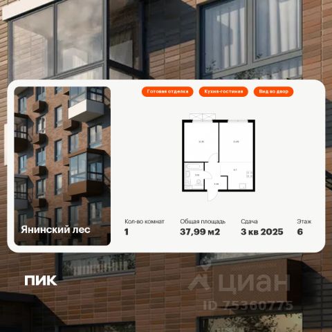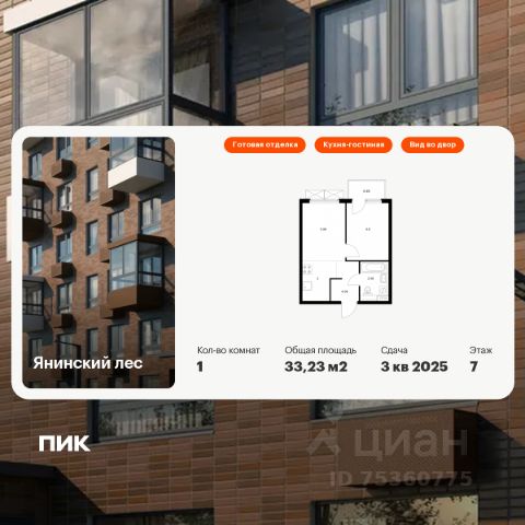 Продаётся 1-комн. квартира площадью 34,36 кв.м на 8 этаже 15 этажного дома (Корпус 6, Секция 3) проекта ПИК Янинский лес. Светлый просторный подъезд на уровне земли, функциональная планировка, большие окна, c отделкой. Жилой квартал "Янинский лес" возводится в районе Янино-1 Ленинградской области. Автобусная остановка находится в 3 минутах пешком. Проект расположен вплотную к восточной границе Санкт-Петербурга - в 4 минутах от КАД. До метро "Ладожская" - 23 минуты на общественном транспорте. До исторического центра города можно доехать за 25 минут на автомобиле. "Янинский лес" - масштабный проект из 32 жилых корпусов, где будет всё для комфортной жизни. Здесь предусмотрены надземные паркинги, откроются детские сады, школа и поликлиника. Кроме этого, появятся места, в которых можно проводить свободное время: ледовая арена и торговый центр площадью больше 3000 м². Жилой район строится по всем правилам ПИК-Стандарта: в зелёных дворах-парках появятся современные детские и спортивные площадки, пешеходный бульвар и другие места для отдыха. На первых этажах разместятся магазины, кафе и другие сервисы. Во дворах не будет автомобилей, а для гостей предусмотрены парковочные места. Проект окружают лесные массивы. В пешей доступности находится Ржевский лесопарк: летом там можно гулять и собирать грибы, а зимой кататься на лыжах. Также рядом расположен памятник природы Колтушские высоты - парк с обустроенными экотропами и веломаршрутом. А главное место притяжения местных жителей - озеро с обустроенным местом для пикников. Артикул 915793 (Застройщик ООО "СПЕЦИАЛИЗИРОВАННЫЙ ЗАСТРОЙЩИК"ЭКСТРАГРАД") [cn_sbp_1442085]