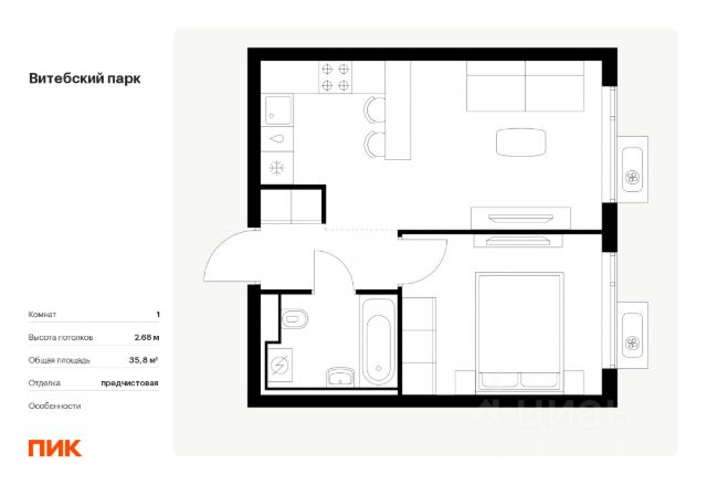 Светлая однокомнатная квартира с прекрасными видовыми характеристиками, в престижном Московском районе, в пешей доступности от станции метро Парк Победы!