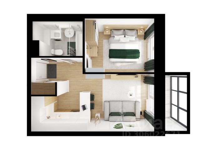 Планировка квартиры очень удобная и функциональная. Вас порадует просторная кухня, где вы сможете готовить вкусные блюда для себя и близких. В комнате также предоставлено достаточно места для обустройства гостиного уголка или рабочего места, для этого в потолке смонтированы направляющие, которые помогут разграничить эти зоны.