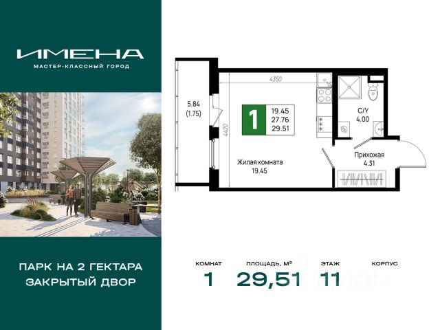В живописном районе на юге Санкт-Петербурга, рядом с берегом Невы и Невским лесопарком, продается 1-комнатная квартира площадью 25.51 кв. м, расположенная на 4 этаже 23-этажного дома 6. Квартира находится в жилом комплексе комфорт-класса "Имена" от ГК "ССК". О проекте Жилые кварталы "Имена" - это проект, призванный стать отправной точкой для самой значимой главы вашей личной истории. Здесь созданы все условия для формирования крепких семейных ценностей, реализации амбиций и поиска источников для новых достижений. Уникальное расположение на стыке городской динамики и природной красоты обеспечивает максимальный комфорт и сбалансированный образ жизни. Это место для тех, кто мастерски видит перспективы, но хочет жить комфортно уже сейчас. Комфорт без компромиссов Квартиры с особым вниманием к деталям: витражное остекление балконов, высокие потолки (до 2,75 м), микроклиматические клапаны на окнах, разводка коммуникаций и электрики, а также интеллектуальный учёт энергоресурсов. Ваш новый дом - это территория под надежной защитой. Умный шлагбаум и передовые системы видеонаблюдения гарантируют безопасность. Передвижение по этажам легкое и приятное благодаря скоростным бесшумным лифтам, а для велосипедов и колясок предусмотрены специальные закрытые помещения. Мы позаботились обо всем: от теплых и гостеприимных холлов до вместительных кладовых. Оцените удобство бесконтактных домофонов с управлением через мобильное приложение и легкий доступ благодаря входам на уровне земли. Успейте приобрести квартиру на выгодных условиях уже сегодня! Доступна ипотека, рассрочка на 6 и 12 месяцев, а также полная оплата. * Возможности для отдыха Сердцем жилого комплекса "Имена" станет бульвар длиной более 1200 метров с парком площадью 2 гектара - пространство, где каждая деталь направлена на создание условий для комфортного отдыха и продуктивной работы на свежем воздухе. Лаунж-зоны с WI-FI, многоуровневое освещение и тщательно спроектированное озеленение превращают это место в идеальное сочетание природы и технологий, где приятно бывать в любое время дня. Для тех, кто предпочитает спокойные практики, предусмотрена крытая площадка для йоги, медитаций и групповых занятий. Любители активного образа жизни оценят воркаут-площадки, уличные тренажеры, беговые дорожки с мягким покрытием и велотреки с датчиками для подсчёта пройденных кругов. Всё рядом Всё необходимое для комфортного проживания находится внутри квартала: - Общественный центр для жителей: пространство для общения, обучения, творчества и саморазвития. - Открытый кинотеатр с показами фильмов и мини-концертами. - Фермерский рынок, где всегда можно купить свежие продукты, цветы и авторские товары ручной работы. - Современные школа и детский сад. - 10 многоуровневых наземных паркингов на 3500 машино-мест; - Магазины, кафе, рестораны, фитнес-клубы и салоны красоты на первых этажах домов. "Имена" - кварталы, где создаётся будущее. *Подробности о способах покупки квартиры уточняйте по телефону офиса продаж.