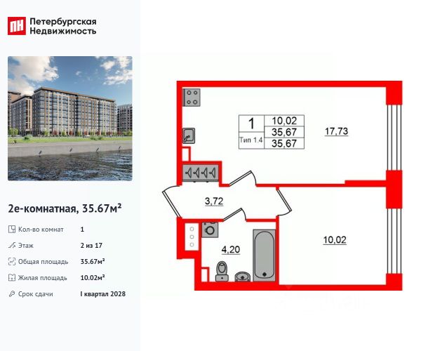 Цена со скидкой до 30% в прямой продаже от застройщика — только в этом месяце. На апартаменты действует беспроцентная рассрочка. Роскошные виды на Неву. 1-к апартамент в комплексе класса бизнес-лайт Зум на Неве на 4-м этаже. Общая площадь 35,7. Предчистовая отделка. Зум на Неве расположен в новом месте силы рядом с центром города на первой линии Октябрьской набережной в Невском районе, всего в 7 км от исторической части Санкт-Петербурга. Большой выбор эргономичных и максимально продуманных планировок позволит каждому найти вариант по душе. Панорамные виды на Неву, благоустроенные дворы, детская игровая комната, подземный паркинг, коммерческие зоны на первом этаже, это и многое другое делает Зум на Неве идеальным местом для жизни. Особенности: - Панорамные виды на Неву и город; - 10 мин. до Парка Строителей, 15 мин. до Лондон-молла, Ленты, Максидома, 15 мин. до метро "ул. Дыбенко", 12 мин. до КАД, 10 мин. до центра; - Единая архитектурная концепция. Сдержанные и монументальные фасады в неоклассическом стиле; - Парадный лобби для жильцов. Единый вход в комплекс с администратором, зоной ресепшн и охраной, зоной для бесконтактной доставки посылок и еды; - Подземный отапливаемый паркинг с доступом из парадной; - Доступно 3 варианта отделки на выбор: черновая, предчистовая (White Box) и чистовая; - Зоны отдыха для взрослых и детей, Wi-Fi-покрытие во дворе и в паркинге, зоны для питомцев, арт-объекты и много другое. В шаговой доступности вся необходимая инфраструктура от детских садов и школ до супермаркетов и салонов красоты; - Все происходящее контролируется видеокамерами, а покой внутренней территории и безопасность ваших детей гарантируется полным отсутствием транспорта во дворах в концепции "без машин". 1-комнатная квартира в ипотеку в округе Невский в Санкт-Петербурге.