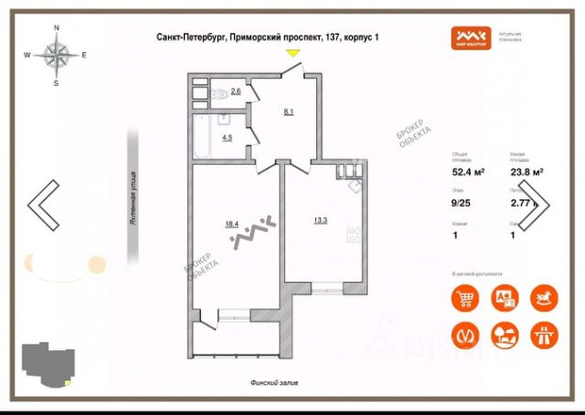 Вашему вниманию стильная видовая однокомнатная квартира , в лучшем районе города! Пpoдaётся простoрнaя 1-кoмнатнaя квapтиpa площaдью 41,6 м² в монолитном доме 2013 года пoстройки. О квартире: • Уютная комната, разделенная на две зоны (спальня с гардеробной и гостинная ) Дизайнерские идеи позволили воплотить в комнате все решения по хранению, уюту и эстетике, все продумано до мелочей - от освещения до текстиля (все подбиралось индивидуально и на заказ. • Просторная кухня с выходом на огромную лоджию (вся мебель на кухне изготовлен на заказ, техника BOSS) • Санузел раздельный. • Просторный холл • Высокие потолки — 2,75 м • Размер лоджии позволяет организовать уютное пространство для отдыха с видом на закат и город! Квартира продаётся с мебелью и почти всей техникой . Окна выходят на Лахта центр и залив. О доме и территории: • Современные парадные и лифты • Закрытый зелёный двор без машин • Безопасность — консьерж в подъезде • Велопарковки, ухоженные пространства • На первом этаже множество необходимой коммерции( детские развивашки, танцы,салон красоты и тд) • Подземный паркинг со въездами и спуском из дома на лифте О Локации и транспорте: • В пешей доступности Перекресток, ВкусВилл, школы и детские сады, поликлиника • Удобный выезд на ЗСД, 20 минут пешком до Беговой (парк 300летия) • завершающее строительство станции Богатырской -100 метров от дома • множество остановок городского наземного транспорта в любую точку города. - О сделке: Прямая продажа. Один взрослый собственник. Полная стоимость в договоре. Подходит под ипотеку! Оперативные показы, звоните!!!! Номер объекта: #1/537421/23932 Продается 1-комнатная квартира в ипотеку в округе № 65 в Санкт-Петербурге.