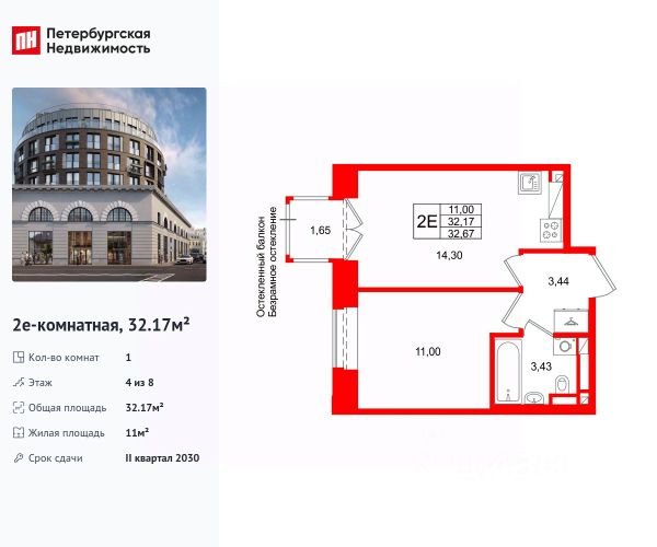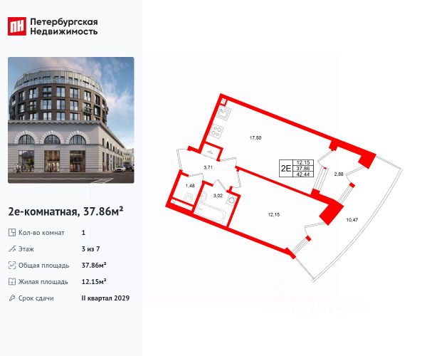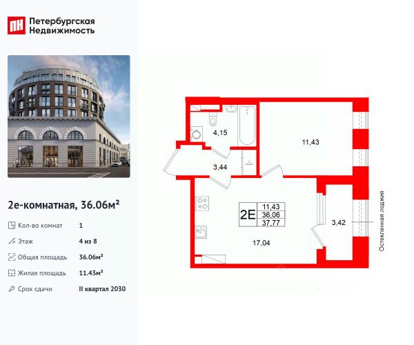 Предлагаем к продаже однокомнатную квартиру в ЖК "Палацио" площадью 38,3 кв. м.