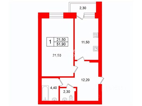 - Площадь: удобная планировка с общей площадью 51,9 м2, идеально подходящей как для проживания одного человека, так и для пары.