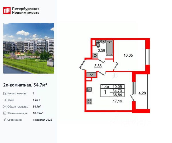 Арт. 132576418 Предлагается к продаже 1- кoмнатная квартирa в малоэтажном жилом комплексе комфорт-класса "Зелёный квартал на Пулковcких выcотаx".