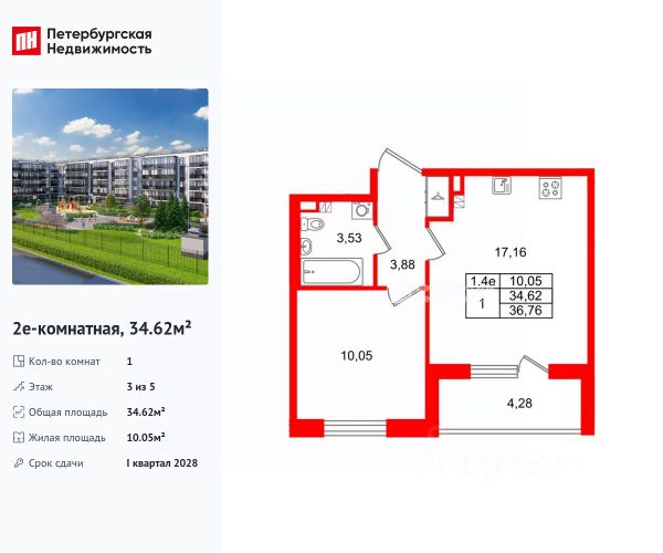 Продается просторная 1-комнатная квартира от застройщика в жилом комплексе "Парадный ансамбль" в престижном Московском районе. До метро можно добраться на транспорте всего за 20 минут. Удобная, классическая, функциональная европланировка, большая кухня-гостиная 19.71 м², просторная прихожая 5.19 м². Общая площадь квартиры - 39.1 м², жилая 10.72 м², высота потолка 2.77 м. Квартира продается с отделкой "NORD LINE SILVER". Что особенного в ЖК "Парадный ансамбль"? • Инновационный Лицей Setl с оригинальной архитектурной концепцией и уникальной образовательной средой • Масштабное малоэтажное строительство в престижном Московском районе • Рекреационные зоны: парадный парк в центре квартала, ручей с собственной набережной, центральная площадь, ресторанный комплекс и пешеходный бульвар • Фасады из керамогранита и кирпича с яркими и акцентными входными группами • Две самые большие площадки Setl Kids и Setl Sport • Уникальные квартиры.High Flat на последних этажах, палисадники у квартир на первом этаже, семейные секции, квартиры с саунами и окном в ванной
