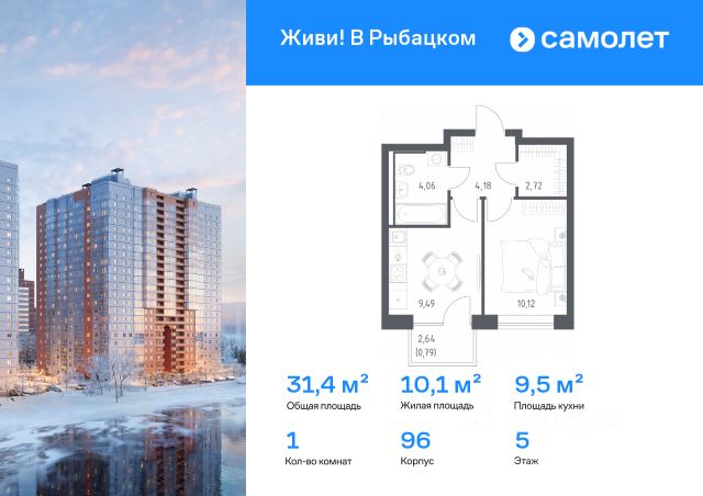 Строим кварталы для жизни с заботой о будущем. Предлагается 1-комнатная квартира комфорт-класса 30,57 кв.м в корпусе 96 на 2 этаже, в ЖК "Живи! В Рыбацком" Квартира с предчистовой отделкой. Доступность дополнительных опций уточняйте у застройщика. Приобрести квартиру возможно по специальным акциям от застройщика, с текущими условиями акций можно ознакомиться в блоке "Акций". Цена динамическая и может отличаться, уточняйте актуальность у застройщика. Квартал "Живи! В Рыбацком" в Невском районе Санкт-Петербурга расположен рядом с рекой Славянкой и парком. Всего 20 минут пешей прогулки — и вы у метро "Рыбацкое". Автомобилисты будут добираться до КАДа за десять минут. В квартале работают два детских сада, школа и кабинет врача. На первых этажах зданий открыты магазины, кафе и салоны красоты. Во дворе — зеленые бульвары, воркаут-площадка, спортивный и игровой кластеры. Для машин — подземный паркинг. Кирпично-монолитные дома с каменной облицовкой — воплощение долговечности и тепла. Есть в квартале и камерный 30-й корпус, в нем восемь этажей, 70 квартир и приватный двор-парк. В сквозных парадных — безбарьерная среда, помещения для хранения колясок и велосипедов и система видеонаблюдения. Продается 1-комнатная квартира в ипотеку в территории Усть-Славянка в Санкт-Петербурге.