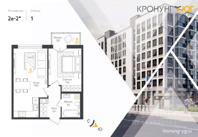 Продаётся квартира 38,6 м² с новым современным ремонтом в 15 минутах езды от м. Проспект Ветеранов