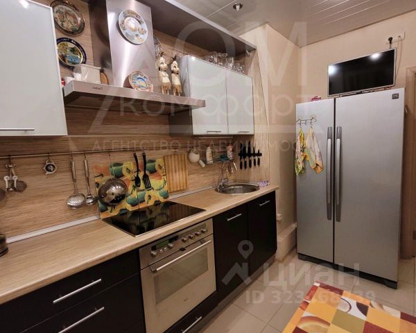 ПРОСТОРНАЯ КУХНЯ-ГОСТИНАЯ жилой площадью 15,7 м - используется как место, объединяющее семью, со столовой зоной, раскладным диваном и зоной ТВ. Угловой кухонный гарнитур аккуратно вписан в нишу, не съедает пространство, хорошего качества, с оптимальным набором техники!