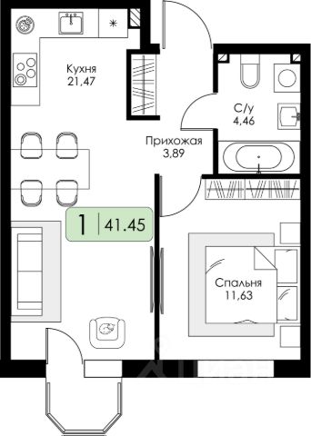 При входе есть место под глубоктй шкаф купе-60 см, болшая совмещенная ванная с туалетом, где поместиться стиральная машинка, к комнате-гостинной отделена зона, для кухни. В квартире есть 2-е колонны, как раз в зоне приготовления пищи, там прекрасно рисуется дизайн-проект со столом(типа барной стойки), так же сверху можно разместить полку, для бокалов, микроволновки или так же продолжить систему кухонного хранения. как раз получается отдельный островок. Остальная часть под огромный диван, телевизор или просто фитнес зал, кто что хочет. Очень получается уютно. Окна смотрят во двор, вдали от проезжей части, никогда не будет шума.