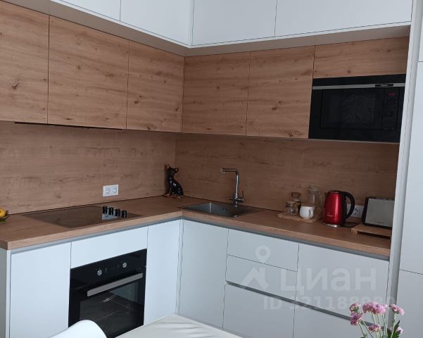 Встроенная кухня с варочной панелью Воsсh и вытяжкой шведского производства (покупалась в IКЕА) остается в подарок. Кухня была изготовлена под заказ, фасады шкафов выполнены из надежного материала акрила. Вся фурнитура иностранного производства, в отличном состоянии. Рабочая зона и ниша для хранения оснащены подсветкой.
