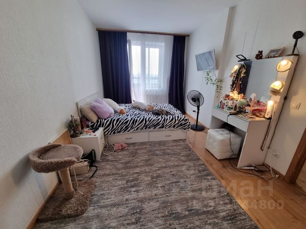 Комната правильной формы, есть ниша для шкафа, на полу качественный ламинат. В комнате установлен вместительный встроенный шкаф-купе с продуманными зонами хранения. Встроенный шкаф и тумбу оставим по договоренности.