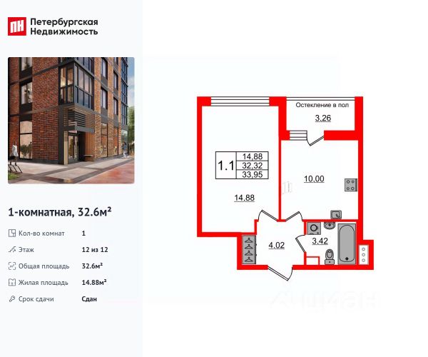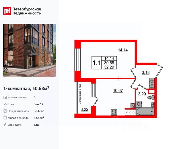 • ✓ В базе Циан 13 1-комнатных квартир в кирпично-монолитном доме на улице Кубинская в Санкт-Петербурге