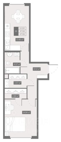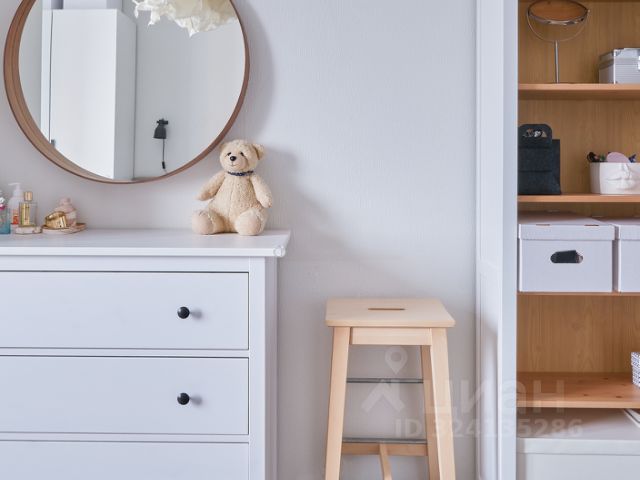Комната правильной формы, есть ниша для шкафа, на полу качественный ламинат. В комнате установлен вместительный встроенный шкаф-купе с продуманными зонами хранения. Встроенный шкаф и тумбу оставим по договоренности.