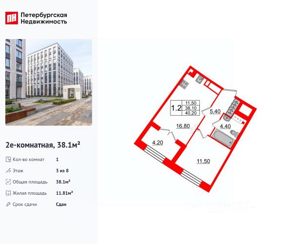 • ✓ В базе Циан 243 1-комнатных квартир в кирпично-монолитном доме рядом с метро Зенит