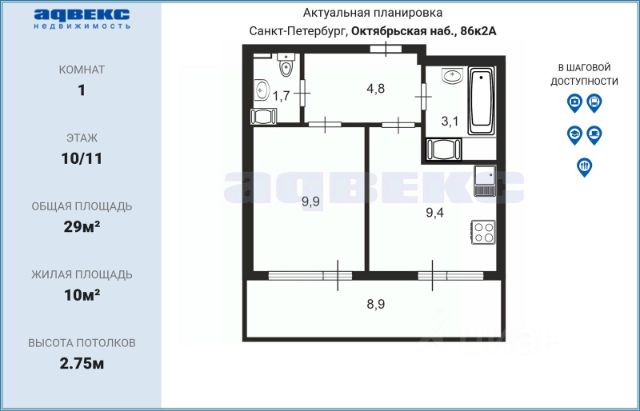 Также в нескольких минутах ходьбы все необходимое для комфортной жизни и отдыха: школы 690 и 39, детские сады, Фитнес-центр "Fitnеss Рlаzа" с бассейном и детскими секциями, аптеки, салоны красоты, кафе, кофейни, суши-бары, стоматология, филиалы поликлиник для взрослых и детей, женская консультация. Недалеко строится поликлиника на 420 посещений в смену (срок сдачи июнь 2027 года).