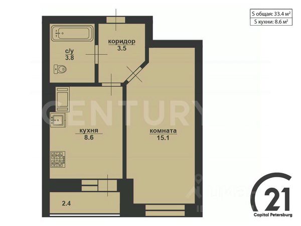 Светлая, уютная квартира общей площадью 33,3 кв.м с новым, хорошим ремонтом, качественной сантехникой, гардеробной и кухней.