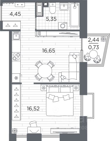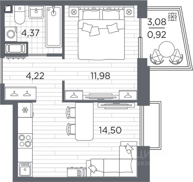 - Санузел раздельный (никаких компромиссов между душем и троном). Потолки 2,7 м — головой не заденешь, даже если вы баскетболист.