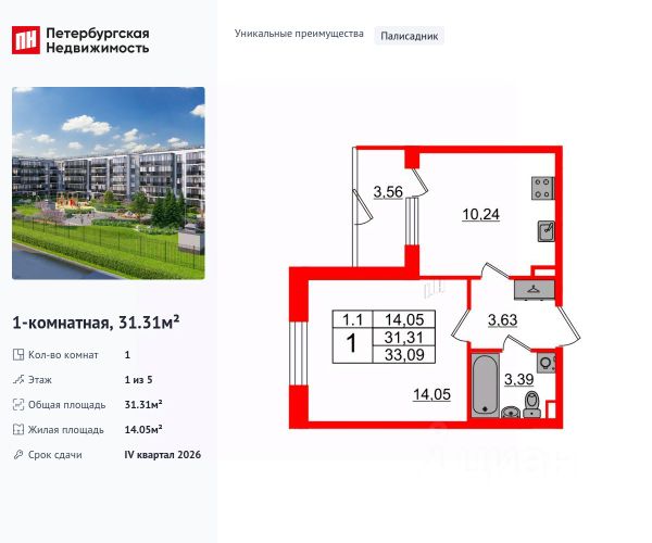 Продается просторная 1-комнатная квартира от застройщика в жилом комплексе "Парадный ансамбль" в престижном Московском районе. До метро можно добраться на транспорте всего за 20 минут. Удобная, классическая, функциональная европланировка, большая кухня-гостиная 19.71 м², просторная прихожая 5.19 м². Общая площадь квартиры - 39.15 м², жилая 10.72 м², высота потолка 2.77 м. Квартира продается с отделкой "NORD LINE WHITE" Что особенного в ЖК "Парадный ансамбль"? • Инновационный Лицей Setl с оригинальной архитектурной концепцией и уникальной образовательной средой • Масштабное малоэтажное строительство в престижном Московском районе • Рекреационные зоны: парадный парк в центре квартала, ручей с собственной набережной, центральная площадь, ресторанный комплекс и пешеходный бульвар • Фасады из керамогранита и кирпича с яркими и акцентными входными группами • Две самые большие площадки Setl Kids и Setl Sport • Уникальные квартиры.High Flat на последних этажах, палисадники у квартир на первом этаже, семейные секции, квартиры с саунами и окном в ванной