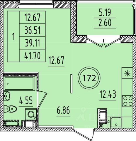- Лоджия 2,80 кв.м.