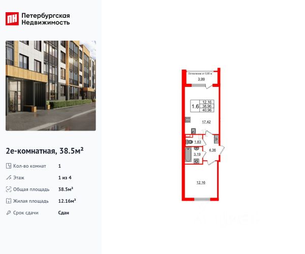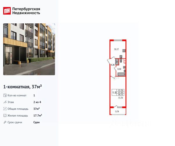 Продается просторная 1-комнатная квартира от застройщика в жилом комплексе "Univer City" в на юге Санкт-Петербурга. До метро можно добраться на транспорте всего за 30 минут. Удобная, классическая, функциональная европланировка, большая кухня-гостиная 17.11 м², просторная прихожая 4.68 м². Общая площадь квартиры - 39 м², жилая 12.71 м², высота потолка 2.77 м. Квартира продается с отделкой "NORD LINE SILVER". Что особенного в ЖК "Univer City"? • Малоэтажное строительство • Скандинавские фасады с отделкой керамогранитом, акцентные входные группы • Закрытые внутренние дворы без машин • Пешеходный променад с тематическими зонами, еловый сквер и яблоневый сад • Univer Park, включая SetlSport и SetlKids, площадку для выгула собак и зоны отдыха • Инновационный Лицей Setl с оригинальной архитектурной концепцией и уникальной образовательной средой