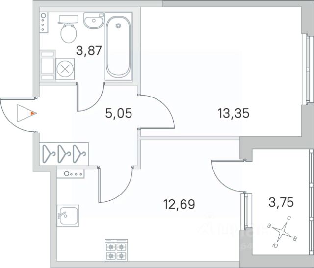 * Инфраструктура: Все, что нужно для жизни, рядом: круглосуточный гипермаркет "Лента" и "Леруа Мерлен" в шаговой доступности.