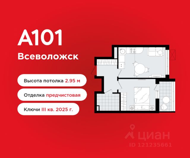 1-комнатная квартира площадью 38.10 в ЖК "А101 Всеволожск" c лоджией на 7 этаже. Квартира без отделки. Вид из окна на улицу. В квартире 1 санузел. Высота потолков 2.80 м. ОТДЕЛКА Квартира передается без отделки. Благодаря тому, что в данном типе отделки стены не возводятся, вы сможете создать удобную планировку и самостоятельно организовать зонирование комнат. ДВОРЫ И ОКРУЖЕНИЕ Большая часть территории комплекса отведена под зелёные благоустроенные зоны: теневые сады, уютные городские пространства с развитой тротуарной сетью и велодорожками - всё для вашего активного и здорового образа жизни. Внутренние дворы закрыты от посторонних и свободны от автомобилей. Каждый дом оснащён высокотехнологичными системами видеонаблюдения и контроля доступа, обеспечивая максимум безопасности и спокойствия для вас и ваших близких. Окружение района - живописный природный ландшафт. Всего в 5 минутах ходьбы располагается Ковалёвский лесопарк - источник кислорода, пространство для спорта, отдыха и приятных прогулок на свежем воздухе. ПАРАДНАЯ Мягкая мебель, живые растения и натуральные материалы в отделке формируют современный и уютный интерьер входной группы, радующий глаз и создающий приятную атмосферу для встреч с гостями. Для вашего удобства реализован безбарьерный вход, отвечающий требованиям доступной среды для всех жильцов, а также в каждой парадной имеется отдельное помещение для хранения колясок и велосипедов. ИНФРАСТРУКТУРА В жилой застройке сохранена естественная среда благодаря разнообразию растительности, извилистым дорожкам и уличной мебели из натуральных материалов. Здесь находится насыщенная сеть экотроп протяжённостью более 10 км прямо у дома, а просторная площадь позволяет жителям приятно провести время, общаться с соседями и отдыхать. Также предусмотрены зоны для отдыха и специально оборудованные спортивные площадки для активного образа жизни на свежем воздухе. На территории района ГК "А101" создает современный учебно-образовательный кластер, В "А1О1 Всеволожск" предусмотрена современная школа на 1300 учеников и 2 детских сада Всё самое необходимое - рядом с вашим домом. Выпить утром кофе в уютном кафе или поужинать с друзьями, отвести детей на развивающие занятия или игровую площадку, купить продукты и товары первой необходимости. В проекте запланировано уникальное гастрономическое пространство, располагающееся на основном пешеходном бульваре жилого района. Территория дополнительно оборудована местами отдыха на свежем воздухе, а для ресторанов и кафе будет предусмотрена возможность организации летних веранд. ЗАСТРОЙЩИК ГК "А101" - один из крупнейших застройщиков России. Каждая восьмая квартира, проданная в Москве, находится в районе, построенном компанией, что подчеркивает её значимость и успех на рынке недвижимости. 1-комнатная квартира в Всеволожске.