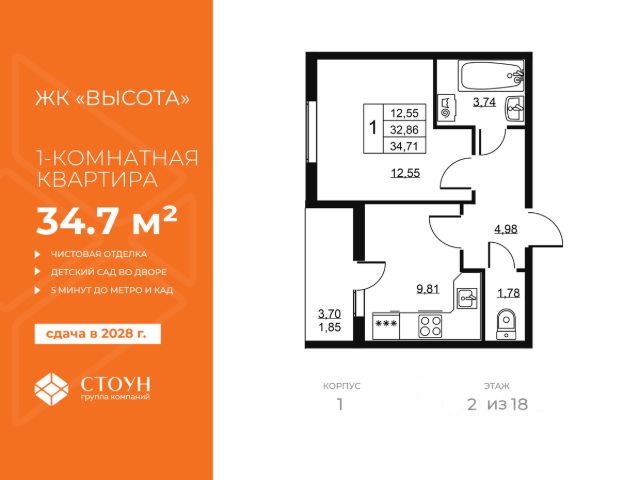 Продаётся 1-комнатная квартира в сданном доме (Нижняя, 5к2 (Дом 5 Корпус 2)), срок сдачи: I-кв. 2024, общей площадью 38.89 кв.м., на 6 этаже. Расположение, транспортная доступность