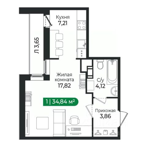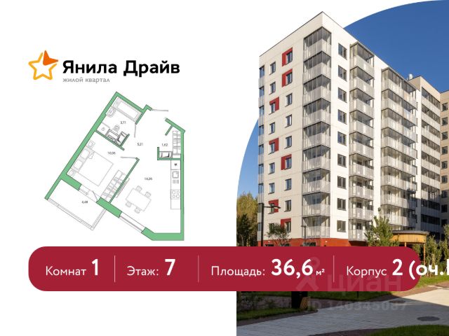 Продается 1-комнатная квартира 35,76 кв.м. на 1 этаже. В продаже квартира в жилом комплексе комфорт-класса "Финский квартал".