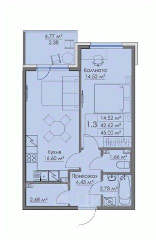 Продаётся 1-комнатная квартира в сданном доме (Дом М6 - Котка), срок сдачи: IV-кв. 2023, общей площадью 42.3 кв.м., на 8 этаже. ЖИЛОЙ КОМПЛЕКС В ВЫБОРГЕ