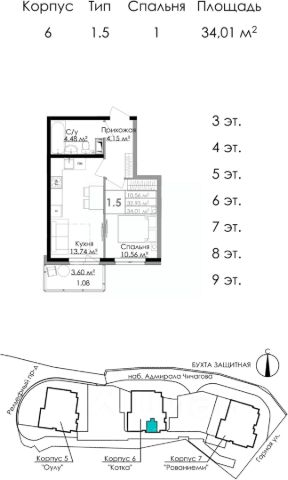 Продаётся 1-комнатная квартира в сданном доме (Дом М6 - Котка), срок сдачи: IV-кв. 2023, общей площадью 33.9 кв.м., на 9 этаже. ЖИЛОЙ КОМПЛЕКС В ВЫБОРГЕ