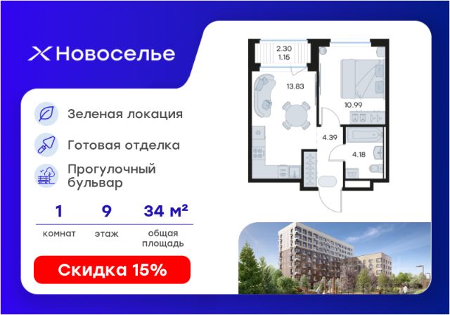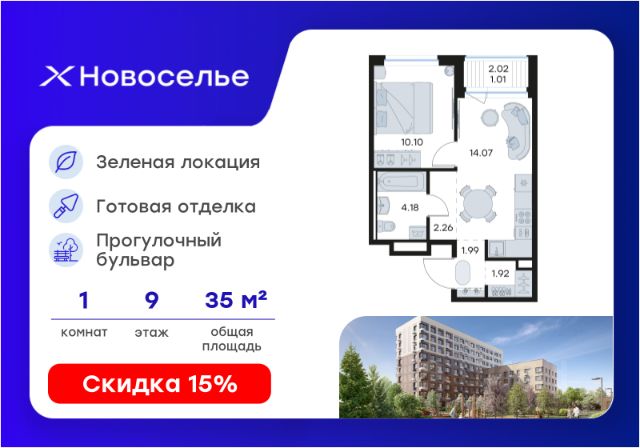 Продаётся 1-комн. квартира площадью 46,2 кв.м на 12 этаже 12 этажного дома (Корпус 4.1, Секция 1) проекта ПИК Таллинский парк. Светлый просторный подъезд на уровне земли, функциональная планировка, большие окна, без отделки. "Таллинский парк" - проект в Ленинградской области, в районе Новоселье. До станции метро "Проспект Ветеранов" - 15 минут на автомобиле, а до КАД можно доехать всего за 4 минуты. "Таллинский парк" включает 16 жилых домов, детский сад и школу. В проекте появится центральный сквер с обильным озеленением, а через весь квартал протянутся широкие пешеходные бульвары. В зелёных дворах-парках будут оборудованы современные детские и спортивные площадки, обустроены места для отдыха. На первых этажах разместятся магазины, кафе и другие сервисы. Проектом предусмотрены персональные кладовые помещения - это доступный, экономичный и удобный способ хранения сезонных и крупногабаритных вещей. Освободите свою квартиру для полноценной жизни. Район Новоселье активно развивается в городском формате: здесь уже работают детские сады, школа и магазины. Для любителей зимних видов спорта открыта круглосуточная ледовая арена. За покупками и развлечениями также можно быстро доехать: 10 минут - и вы в Аутлете Таллинское, гипермаркетах Лента, Леруа Мерлен и Окей. В 10 минутах на автомобиле находится Финский залив, на берегу которого расположились объекты культурного наследия. Рядом - Константиновский парк с отреставрированным дворцом, а чуть дальше расположена усадьба Знаменка. В великолепном Петергофе вы будете уже через 20 минут. Артикул 1026281 (Застройщик ООО "СПЕЦИАЛИЗИРОВАННЫЙ ЗА СТРОЙЩИК "СТРОЙ-ЭКСПЕРТ ") [cn_sbp_1807066]