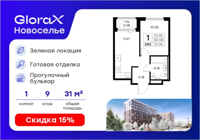 Продаётся 1-комн. квартира площадью 41,7 кв.м на 12 этаже 12 этажного дома (Корпус 3.3, Секция 1) проекта ПИК Таллинский парк. Светлый просторный подъезд на уровне земли, функциональная планировка, большие окна, предчистовая отделка. "Таллинский парк" - проект в Ленинградской области, в районе Новоселье. До станции метро "Проспект Ветеранов" - 15 минут на автомобиле, а до КАД можно доехать всего за 4 минуты. "Таллинский парк" включает 16 жилых домов, детский сад и школу. В проекте появится центральный сквер с обильным озеленением, а через весь квартал протянутся широкие пешеходные бульвары. В зелёных дворах-парках будут оборудованы современные детские и спортивные площадки, обустроены места для отдыха. На первых этажах разместятся магазины, кафе и другие сервисы. Проектом предусмотрены персональные кладовые помещения - это доступный, экономичный и удобный способ хранения сезонных и крупногабаритных вещей. Освободите свою квартиру для полноценной жизни. Район Новоселье активно развивается в городском формате: здесь уже работают детские сады, школа и магазины. Для любителей зимних видов спорта открыта круглосуточная ледовая арена Ice Rink. За покупками и развлечениями также можно быстро доехать: 10 минут - и вы в Аутлете Fashion House Таллинское, гипермаркетах Лента, Леруа Мерлен и Окей. В 10 минутах на автомобиле находится Финский залив, на берегу которого расположились объекты культурного наследия. Рядом - Константиновский парк с отреставрированным дворцом, а чуть дальше расположена усадьба Знаменка. В великолепном Петергофе вы будете уже через 20 минут. Артикул 909564 (Застройщик ООО "СПЕЦИАЛИЗИРОВАННЫЙ ЗА СТРОЙЩИК "СТРОЙ-ЭКСПЕРТ ") [cn_sbp_1830277]