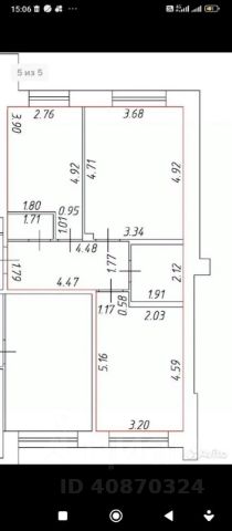 Общая площадь 47,4 м2, комнаты 12 м2, 9 м2 и 15 м2, кухня 6 м2, большая гардеробная и балкон.