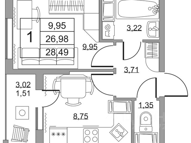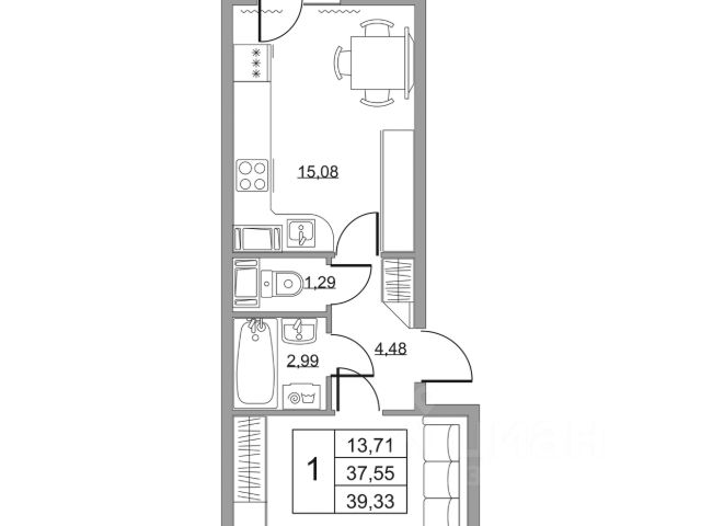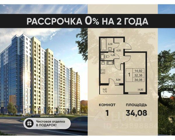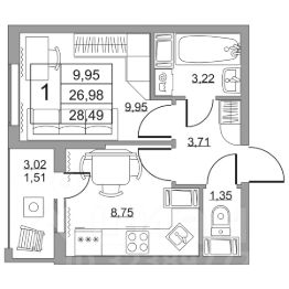 Cрок сдачи - 4 кв 2028 Продается однокомнатная квартира в жилом комплексе "Высота" от ГК СТОУН нa 18 этаже. Общaя площадь cоcтaвляeт 28.49 кв. м. Квартира с отделкой под ключ. Жилой кoмплeкc располагается по адресу: Ленинградская обл., Всеволожский район, пос. Бугры, Гаражный проезд, ул. Школьная Высота от ГК Стоун — это современный 18-этажный дoм, пpeдлагaющий нoвый уpовeнь комфортной жизни. Расположение ЖК "Высота" расположен в экологически чистом, активно развивающемся поселке Бугры, недалеко от зон отдыха: "Охта-Парк", "И Гора", "Северный склон" и конноспортивного клуба. Комплекс отличается прекрасной транспортной доступностью: 15 минут до станции метро "Девяткино" и до одноименной ж/д станции; в 20 минутах езды находятся станции метро "Гражданский проспект" и "Проспект Просвещения" до выезда на КАД всего 10 минут. Комплекс состоит из одного дома, разделенного на 7 секций. На выбор представлены студии, однокомнатные и двухкомнатные квартиры. Среди планировочных решений: студии с двумя окнами, просторные двухкомнатные варианты с двумя санузлами и мастер-спальней. Все квартиры сдаются с готовой чистовой отделкой. Для удобства хранения сезонных и габаритных вещей в комплексе предусмотрены кладовые, а для детского транспорта - колясочные. Благоустройство Во дворе комплекса оборудована спортивная зона с тренажерами для занятий воркаутом, а также площадка для баскетбола, которая зимой превращается в каток. Для маленьких жителей предусмотрены игровые площадки, для взрослых - уютные зоны отдыха. На территории будут высажены деревья и пышные кустарники. Удобство добавляют велопарковки, расположенные у парадных и во дворе, а также отдельные входы на автостоянки. Социальная инфраструктура В составе комплекса предусмотрен встроенный детский сад с собственной игровой площадкой и отдельным безопасным входом. Дошкольное учреждение рассчитано на 75 мест. Ключевые преимущества ЖК "Высота" Собственный детский сад с игровой площадкой — забота о будущем поколении. Близость к метро — экономия времени и сил. Развитая инфраструктура — всё необходимое под рукой. Каток и баскетбольное площадка — здоровье и активный образ жизни. Большой выбор планировок — квартира вашей мечты. Полная чистовая отделка в подарок — заезжай и живи! Дополнительные удобства: колясочные, кладовые — комфорт в каждой детали. Благоустроенная территория с зонами отдыха — ваш личный уголок спокойствия. Безбарьерная среда— забота о каждом.
