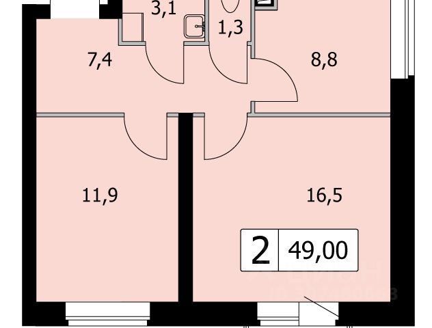 Изолированные комнаты 16,4+12+9 кв.м, кухня 8 кв.м, прихожая 8 кв.м. Санузел раздельный( ванная объединена с гардеробной и составляет 4,2м.кв)