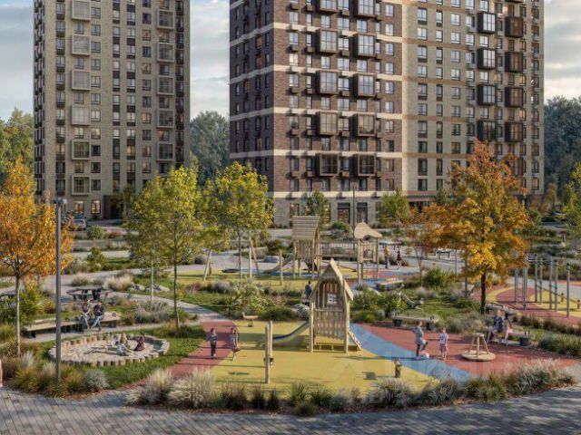 Двор полностью без машин, благоустроен и озеленен: здесь появятся зоны отдыха, детские и спортивные площадки с современным и безопасным покрытием. Все оформлено по авторскому ландшафтному проекту с деревьями, цветниками и кустарниками. Предусмотрены зоны для выгула собак с dog-пакетами. Территория будет закрытой и охраняемой, с системой видеонаблюдения.