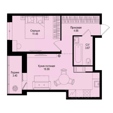 Из кухни есть выход на балкон 4,44 кв.м. — уютное пространство, где можно наслаждаться чашкой кофе и любоваться закатом.