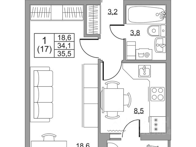 ПРОДАЕТСЯ ВИДОВАЯ ОДНОКОМНАТНАЯ КВАРТИРА на 17/17 этаже!