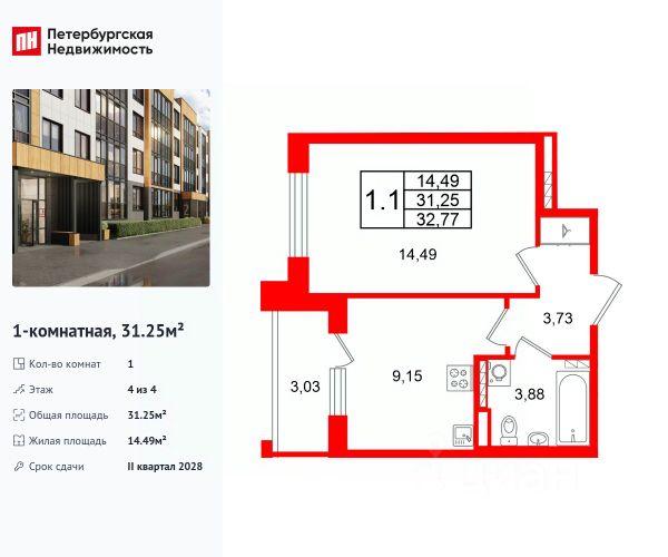 Продается уютная 1-комнатная квартира от застройщика в жилом комплексе "Univer City" в на юге Санкт-Петербурга. До метро можно добраться на транспорте всего за 30 минут. Удобная, классическая, функциональная европланировка, большая кухня-гостиная 15 м², вместительная прихожая 3.9 м². Общая площадь квартиры - 32.2 м², жилая 10 м², высота потолка 3.04 м. Квартира продается с отделкой "NORD LINE SILVER". Что особенного в ЖК "Univer City"? • Малоэтажное строительство • Скандинавские фасады с отделкой керамогранитом, акцентные входные группы • Закрытые внутренние дворы без машин • Пешеходный променад с тематическими зонами, еловый сквер и яблоневый сад • Univer Park, включая SetlSport и SetlKids, площадку для выгула собак и зоны отдыха • Инновационный Лицей Setl с оригинальной архитектурной концепцией и уникальной образовательной средой
