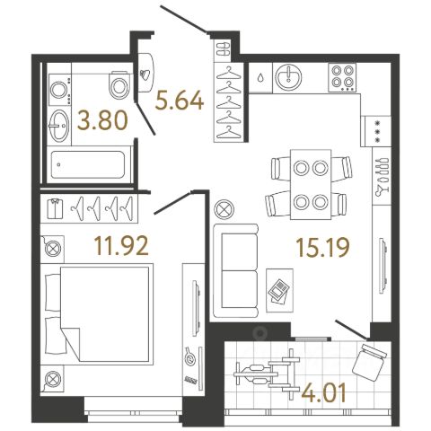 Планировочное решение позволило выделить две гардеробные зоны, в одной из которых можно разместить зону постирочной. Первая гардеробная комната расположена при входе и предназначена для верхней одежды и обуви. Вторая гардеробная комната находится в пространстве мастер-спальни. Кухня-гостиная зонирована, в ней установлен большой раскладной диван с полноценным спальным местом для двоих. Зона кухни подразумевает установку либо угловой, либо прямой кухни, в зависимости от потребностей обладателя квартиры. Все коммуникации, такие как вода, розетки и скрытая вентиляция предустановлены. В наличии есть большой раскладывающийся стол, который гармонично и удобно впишется в интерьер. Спальная комната имеет достаточно места для размещения рабочего стола или комода, при необходимости. Во вместительном санузле установлен душевой угол и большой шкаф для хранения. Во все помещения квартиры проведена приточная вентиляция, а в гардеробах, санузле и кухне имеется принудительная вентиляция, установлены КИВы с фильтрами очистки для притока свежего воздуха. В спальне и кухне установлены кондиционеры.