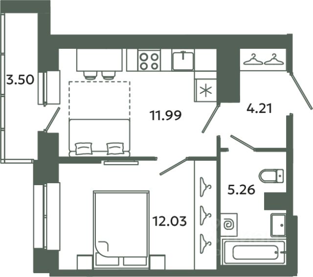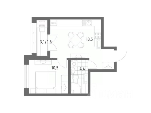 Ваша фантазия не будет ограничена! По желанию можно легко отделить кухню и создать полноценную дополнительную комнату, адаптировав пространство под ваши уникальные потребности.