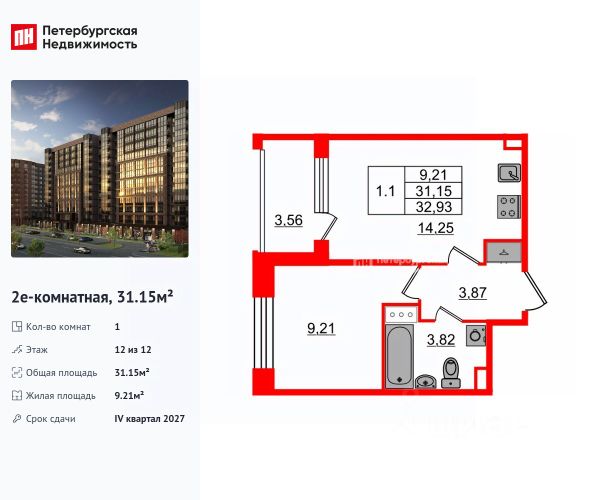 1-комн. квартира от застройщика с отделкой в ЖК "PLUS Пулковский" на 5 этаже. Общая площадь: 34.95 кв.м., жилая: 10.51 кв.м., площадь просторной кухни-столовой: 15.65 кв.м. Все окна выходят на одну сторону. В квартире один балкон, один совмещенный санузел. Высота потолков 2.89 м.