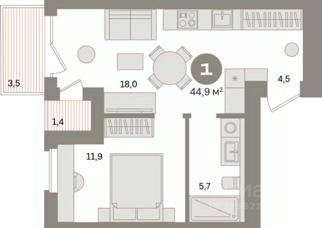 Квартира-студия 24,27 кв.м. в корпусе Cuprum проекта бизнес-класса "BASHNI ELEMENT".