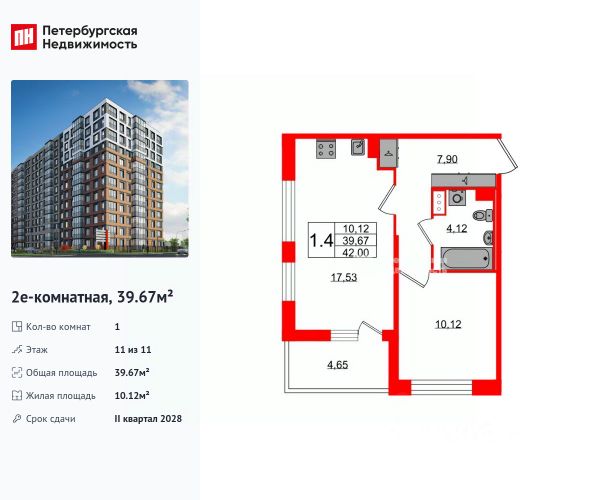 ПРОДАЕТСЯ ВИДОВАЯ ОДНОКОМНАТНАЯ КВАРТИРА на 17/17 этаже!